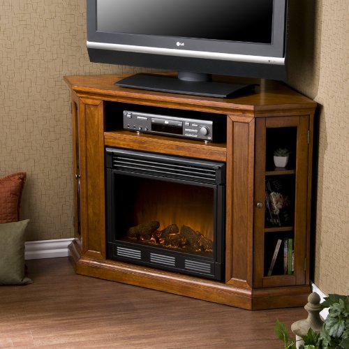 Order online SEI Claremont Media Console With Electric Fireplace, Brown Mahogany. For the entertainment enthusiasts, this distressed brown mahogany fireplace accommodates wonderfully. Triangular media storage shelves on either side of the firebox provide plenty of space for your favorite media selections and are enclosed by glass doors. An additional media equipment shelf rests above the firebox and is complete with convenient back wall cord access. This particular fireplace mantel is also designed with a collapsible panel, allowing for versatile placement against a flat wall... ... >> Read More at Amazon.com